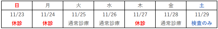 11/29は検査のみの診療となります。