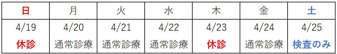 4/25は検査のみの診療となります。